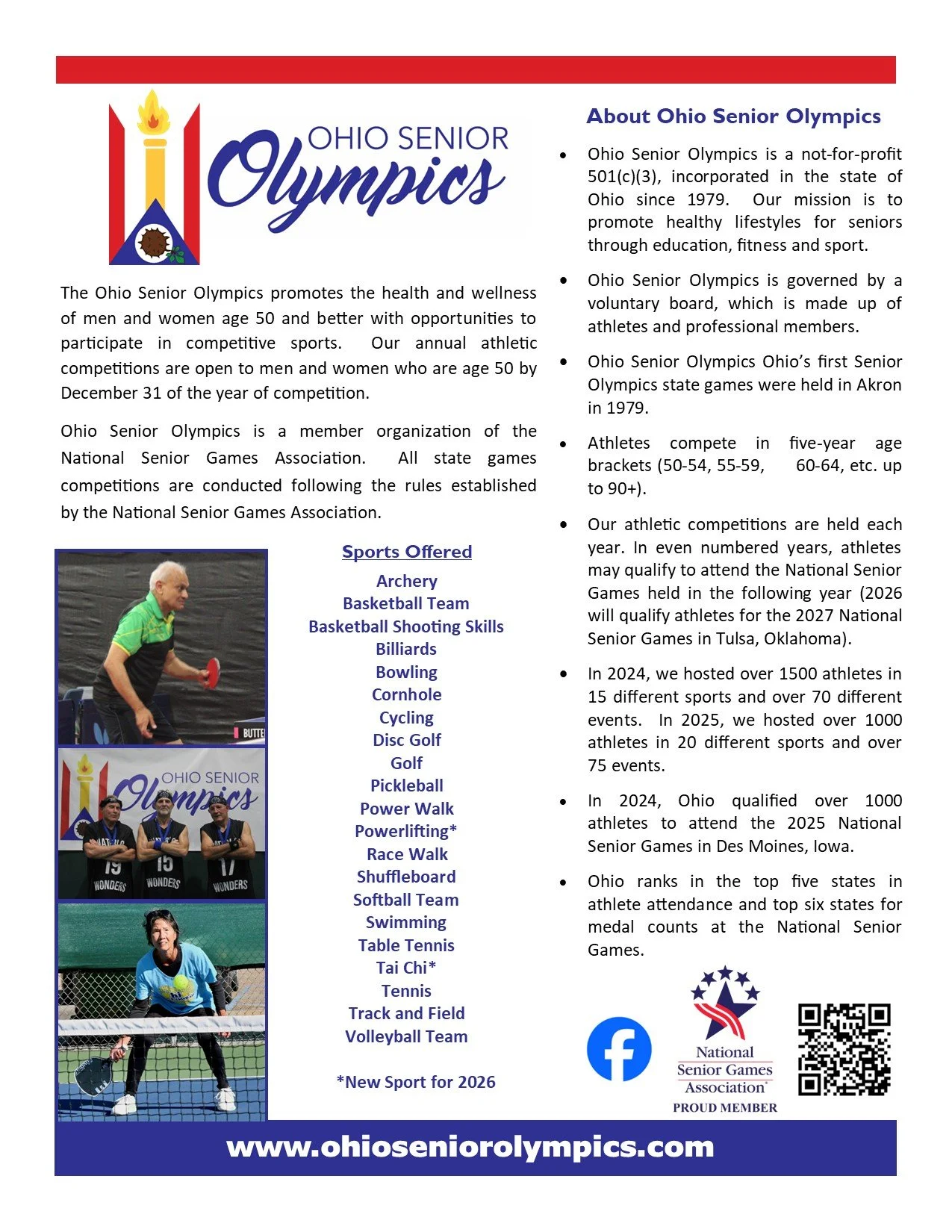 Ohio Senior Olympics is a not-for-profit 501(c)(3), incorporated in the state of Ohio since 1979.